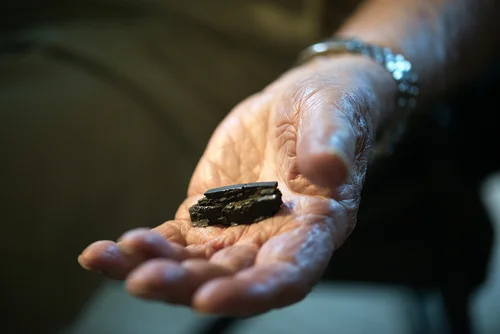 A piece of flak Herb brought back from one of his missions and has kept all of these years since World War Two.