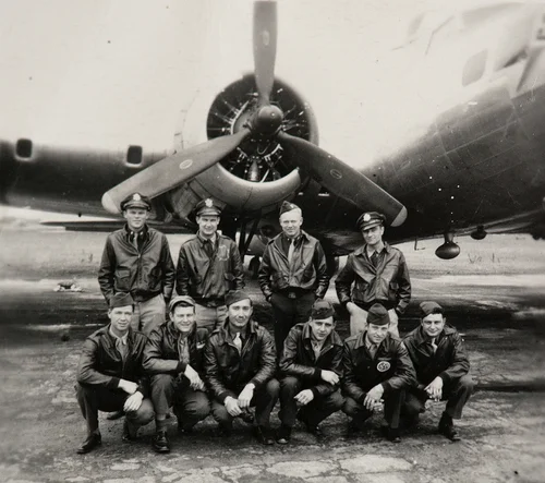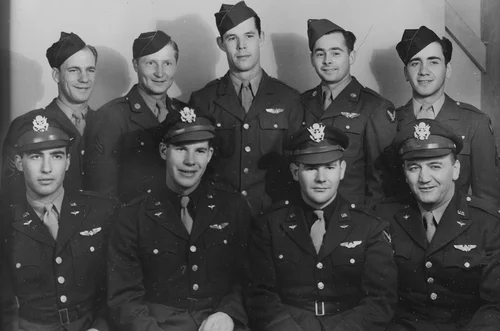 Clarence (Second from the right) and some of his B-17 bomber crew while training in the states.
