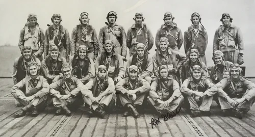 Pilots of Torpedo Squadron Two. Wednesday 24 May 1944. Honored veteran Ken Glass pictured with his signature