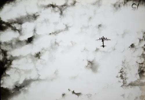 34th Bomb Group B-17 flying over cloud cover in Berlin