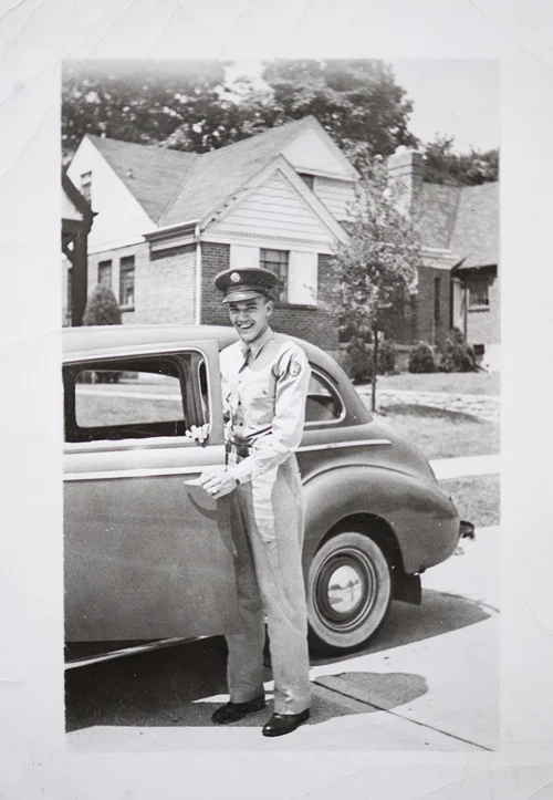 I was born in Columbus, Ohio November 6, 1920. My dad was an immigrant from Italy and had his own tailoring shop. My mother worked for him as a seamstress. Growing up during the depression was rough, real rough. I worked as a shoe shine boy from the time I was in the fourth grade, full time after school and in the summer and the money I made went home to my family to help out. I also had other odd jobs helping out at the grocery store and things like that. I never resented it because I knew what I was doing was helping my family, I was willingly doing it. You just made your way.