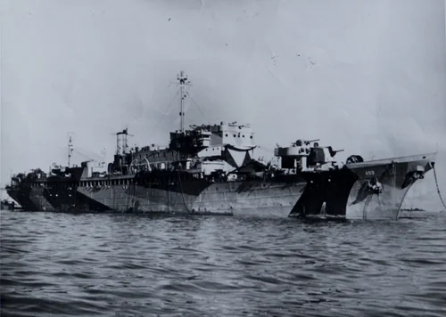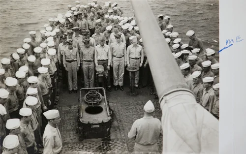 When we shipped out there were one thousand Army and one thousand Marines on the USS Lejeune. The emergency was over on December 31, 1946, two days later on January 2, 1947, we were sailing for Japan. It was a fourteen day trip. When we got to the Sea of Japan we came across a mine field. They stopped the ship and over the horn we heard all Army and Marines below deck. They sunk the mines with rifles. As soon as they took out all of the mines we were back on our way. We were in the Sea of Japan for another day. We stopped again and they cleared out another mine field. We ended up in the Yokohama Bay. On our way into the bay, there were ships sticking up out of the water that had been sunk by mines, I’m sure. The good part was that it was early occupation. We had combat troops there, but General MacArthur was very smart. He said “When we occupy Japan, give me what the people need, food, clothing and shelter or give me guns and bullets.” That’s what he asked the U.S. government and apparently they complied because the guys that we relieved told us that they were expecting the Japanese to attack, but they never did. When we disembarked we walked right ashore and I think the Marines went on to be deployed at Okinawa. It was so cold the first night, I’ll never forget it. It was January 16th. It was so cold there and they had us sleeping in the open on military cots in the truck ports where they kept the military trucks. It was just a roof with no walls. It was so cold.