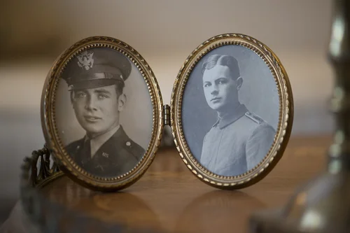 "In early November of 1946, I got to go home for five days to see my family. While I was home for those five days, my brother came home from the Pacific and I got a picture of him and I together. Its an amazing picture because I was about to be shipped out and he was just coming home. Following my visit home we spent all of November and December training in California at Camp Stoneman.
