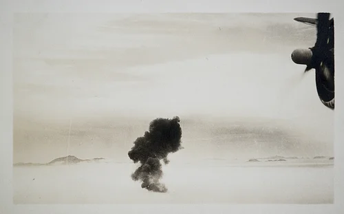 Aerial photograph of the 34th Bomb Group's target at Aussig.