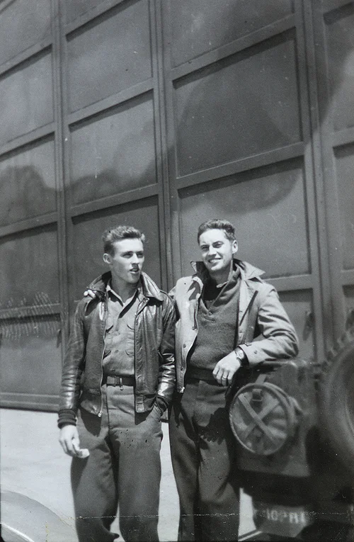 Herb Heilbrun was born October 11, 1920 in Cincinnati, Ohio to his father Herbert, who worked for his wife’s family business that “produced high-quality made-to-measure men’s suits” and his mother Mary Lou, who “Had a promising tryout during Hollywood’s “silent” era, but decided that life in the movies was no life at all after working severals grueling days as a film extra”. As a young boy who loved building wooden model airplanes, he attended elementary school at North Avondale Elementary in Cincinnati alongside his future best friend and Tuskeegee Airman, John Leahr. Herb remembers December 7, 1941, when the Japanese attacked Pearl Harbor. He didn’t hear the news until later on in the afternoon when he stopped at a favorite restaurant in the neighborhood called Sugar N Spice and all of the employees were sitting around listening to the news on the radio; the “Japs” were bombing Hawaii. He had just turned twenty-one in October and was working at the Wright Aeronautical defense plant that had just opened north of Cincinnati and within weeks he decided to join the Army Air Corps and do something he had always dreamt of doing… learn to fly. That following May in 1942 Herb passed the entry exams for the Air Corps and the Cadet Board of Examiners and was then sent home to await an opening for aviation cadet classes. He was finally called up in February of 1943. He had B-17 training in New Mexico and B-17 combat crew training in Texas. When he was finally ready to set off to Europe in a shiny new B-17G, everyone in his crew showed up except his waist gunner. Missing even one member of the crew forced them to be considered incomplete for combat and they were broken apart and placed into other squadrons as replacement crew members. Herb was forced to return to combat crew training and eventually was able to ship out overseas. November 1944, Herb landed in Italy with combat assignment in the 301st Bomb Group. Combat airfield life forced the men to live in a tent city, take off on runways made of interlocking steel mats and build furniture from from junked aircraft.