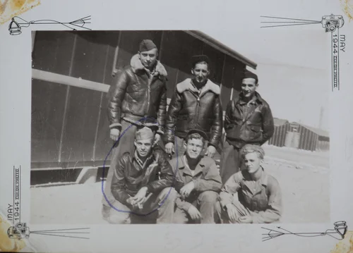 We got called in February of 1943 and reported to Camp Atterbury and were then transferred down to Miami Beach Florida to an Airforce Depot. We were down there for a few months and then I got sent to South Carolina, but the problem with that was that they sent me to South Carolina and sent my brother Bob’s records with me. So instead of sending me back down to Florida and my brother up here, they just sent his records back and switched our records, so instead of going to the Pacific, I ended up going to Europe! I went from there to Due West South Carolina College and we had to take some courses there for three months. I was sent to McBride Missouri outside of Saint Louis, where I received my first lessons in flying. We had the lessons in Pipercubs and Stearmans. I had my basic and advanced training at an airfield in Illinois. A bunch of us were sent out to Iowa where we were promoted to 2nd Lieutenants, up until then I had been a cadet. After becoming a 2nd Lieutenant, I began flying B-24’s at Chanute Field, Illinois. From there I was sent to Pueblo, Colorado and that’s where my crew was assembled, except for the navigator because those guys didn’t need to be on the planes while we were in flight training because our flights were all close to the air base, so they joined later. We were out there for 4 months and during that time I crashed the B-24 into the Rocky Mountains, the same day that my navigator, Americo "Rick" Penna, was set to be assigned to my crew. He arrived to the air base in Pueblo, walked into our barracks and asked where the Arand Crew was and they said they are over in the hospital, they just crashed. Who would want to join that crew knowing that? *laughs* The government interrogated me a few days later and the Captain who was doing the interrogating wanted to know what happened when we crashed and then he said, “I’ll tell you one thing, if I was to go back overseas I’d want to go with you guys because you guys are going to come back… I guess because we crashed and we all walked away from it without a scratch.” We went to the hospital, they checked us out, no one had gotten hurt, except for the engineer, he cut his forehead on the turret. He was standing there and it all happened so fast. He was still standing when we hit. We got out of the hospital, got something to eat and we had to go fly for a couple of hours and that was to keep us from being scared. So we got up and flew around and when we got back I met Rick Penna, my navigator for the first time. I guess he didn’t mind what happened, he stayed with the crew!